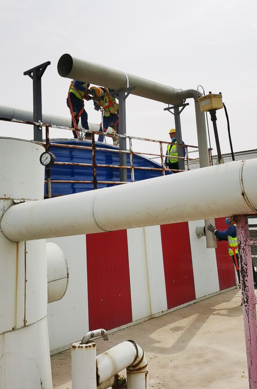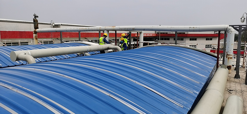 中糧可口可樂遼寧(北)污水處理站VOCs廢氣處理工程,整個處理工藝包括收集和處理兩大項。為了避免氣味源氣味擴(kuò)散,擴(kuò)散源要求封閉,并使整個厭氧池處于負(fù)壓狀態(tài)。和帆環(huán)境工程有限公司在根據(jù)沈陽可口可口VOCs廢氣處理要求和國家廢氣處理標(biāo)準(zhǔn),量身定制了一套VOCs廢氣處理方案。及時解決了污水站厭氧池臭氣擴(kuò)撒問題。由于工廠位置在冬季來臨時冷熱空氣的交換量比較大時,要考慮防止冬天設(shè)備運行結(jié)冰問題。和帆環(huán)境對針對PP管路和噴淋塔冬季運行做了伴熱帶加橡塑海綿保暖措施。